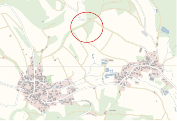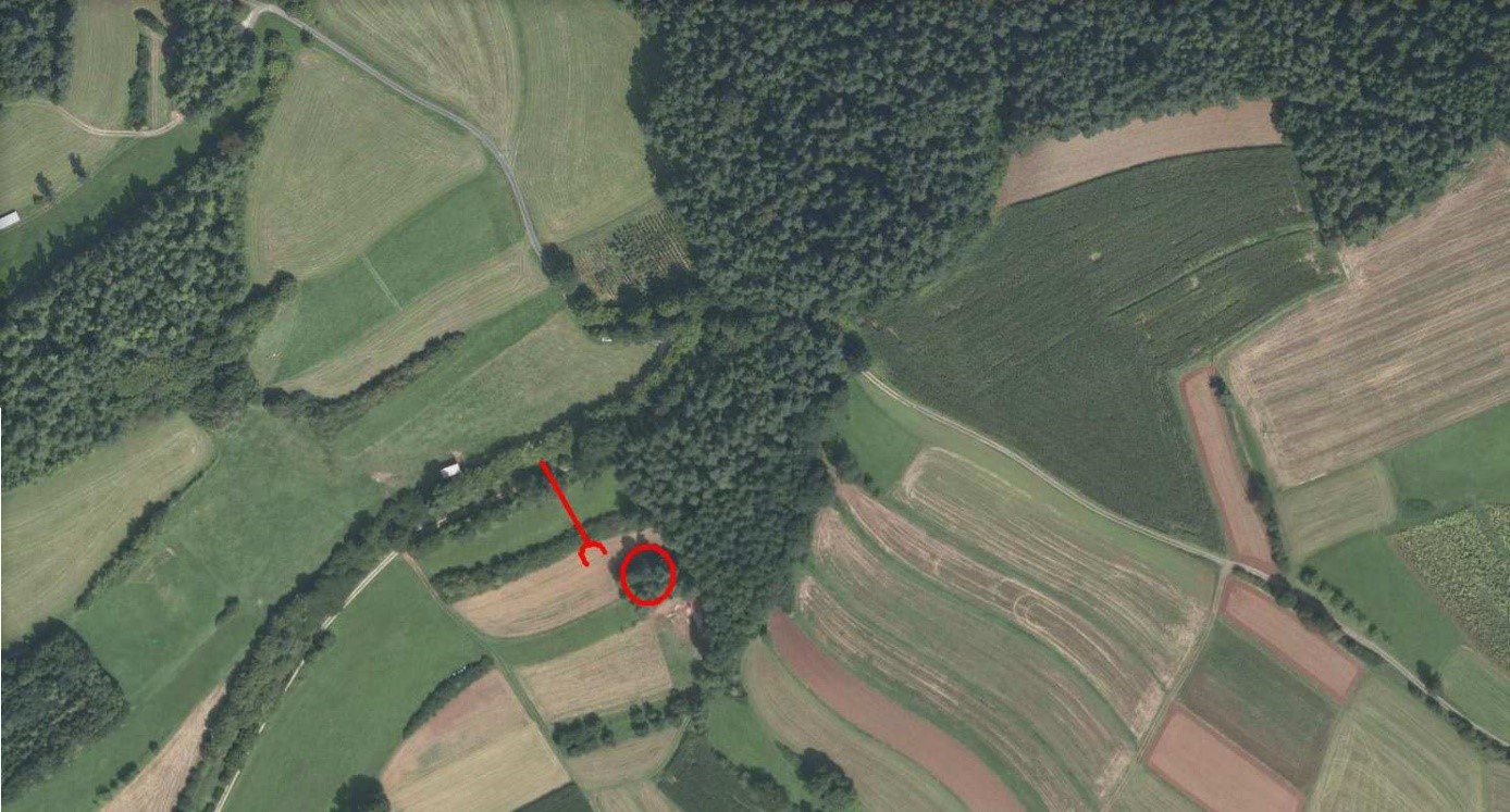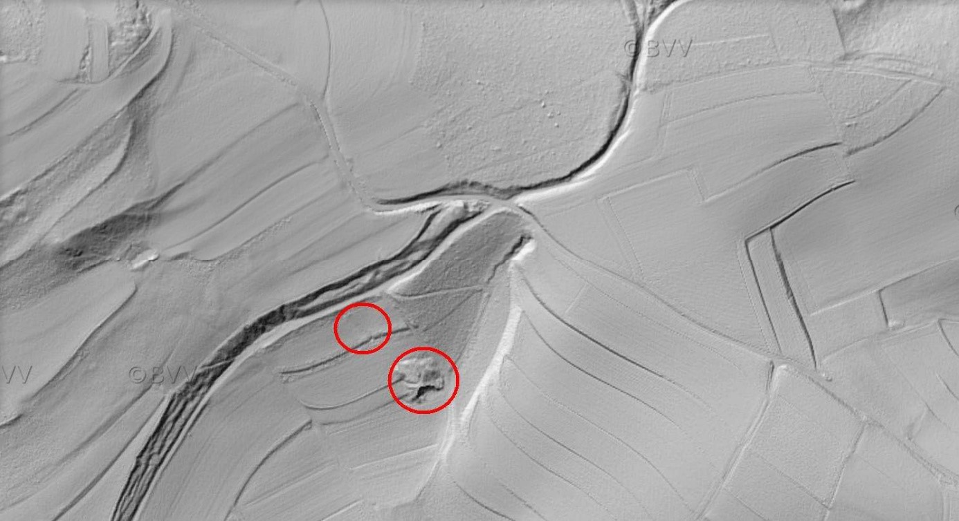 Reliefkarte: Noch ist die Lage des ehemaligen Stollens und ganz deutlich die Halde zu sehen.